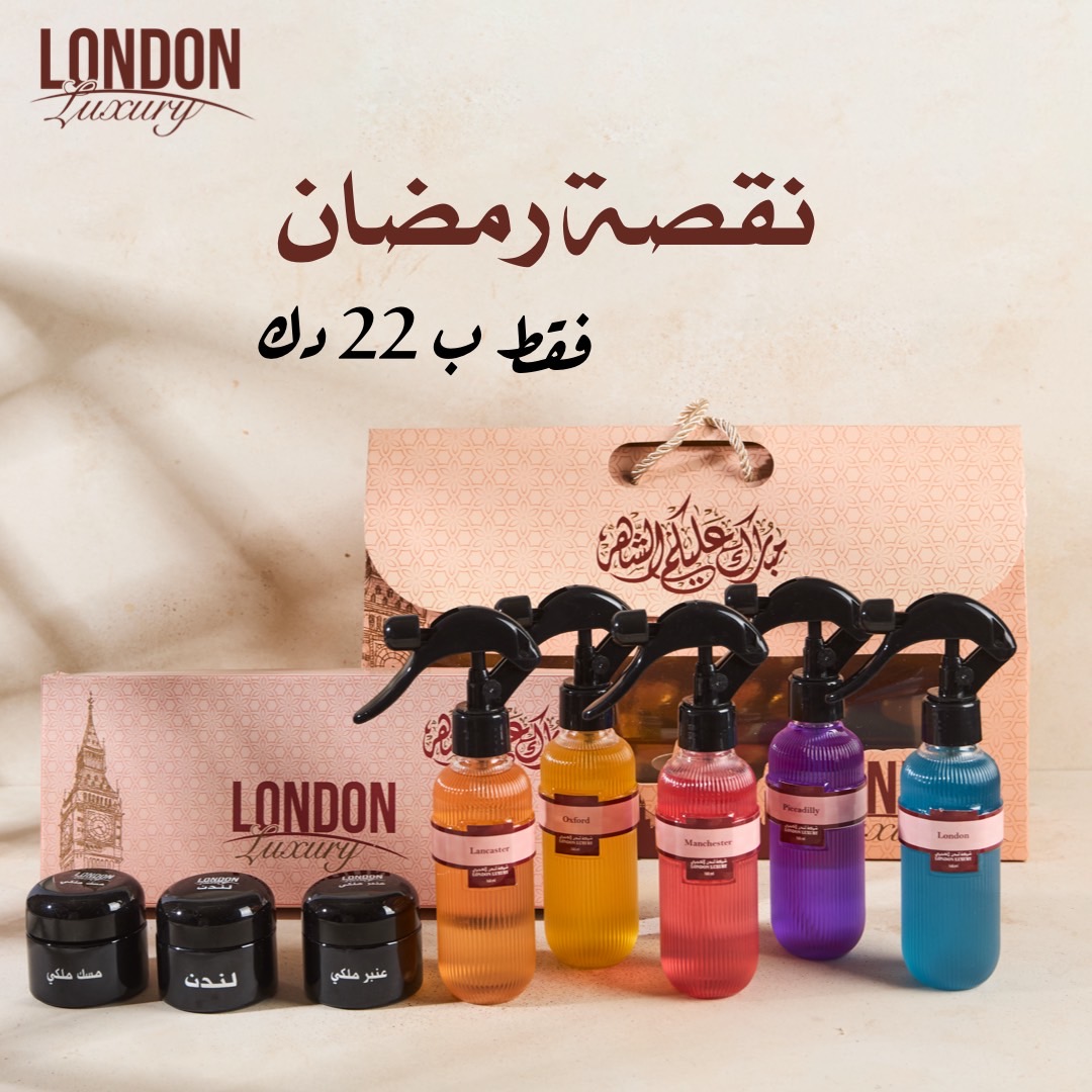 نقصه رمضان عبارة عن 3 أنواع من المعمول + 5 أنواع من الرشوش بروائح مميزة بعبارة مبارك عليكم الشهر كل مرش عباره عن 160 ملي كل نوع المعمول عباره عن 54 غرام كل نوع يحتوي 18 غرام
